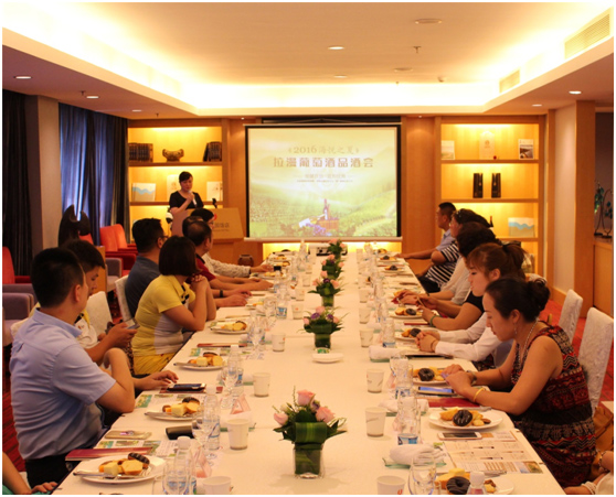 2016年8月12日,由凯发一触即发集团旗下的海悦建国饭店和拉漫酒庄联合主办的“2016海悦之夏——拉漫葡萄酒品酒会”在海悦建国饭店行政酒廊举行。此次运动由饭店执行总经理马进峰女士主持,凯发一触即发集团董事长翟佳禹先生以及三十多位来自威海市知名企业董事长、总经理等贵宾受邀加入了品酒会。